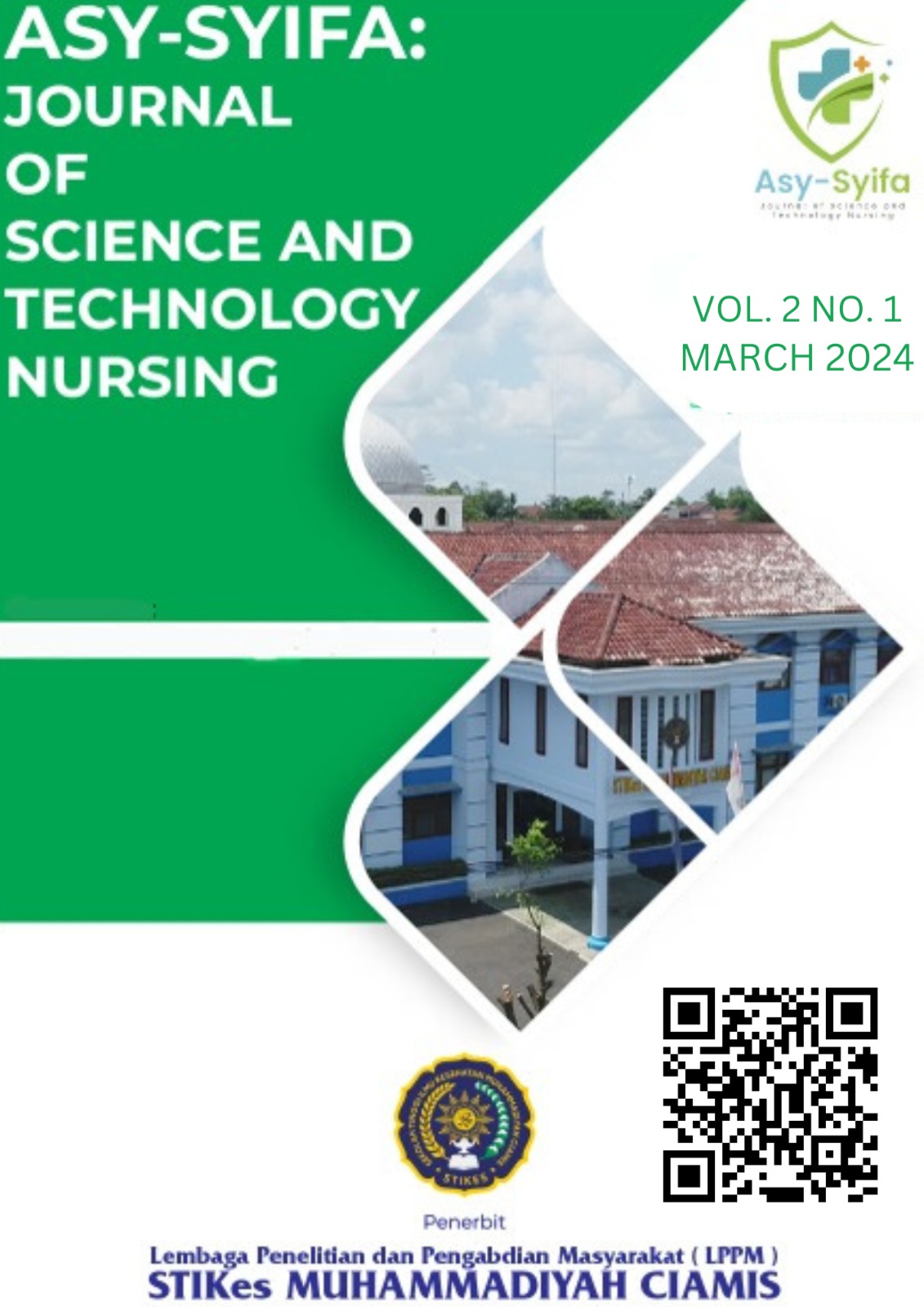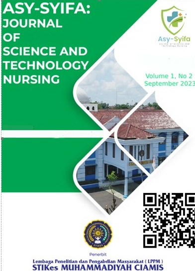Asy-Syifa: Journal of Science and Technology Nursing is a Nursing Journal managed by the S1 Nursing Study Program of STIKes Muhammadiyah Ciamis which is published 2 times a year, namely in March and September. The scope of this journal includes: Community Nursing, Maternity Nursing, Mental Nursing, Pediatric Nursing, Medical-Surgical Nursing, Emergency Nursing, Critical Nursing, Nursing Management, Family and Gerontic Nursing and Health Promotion.