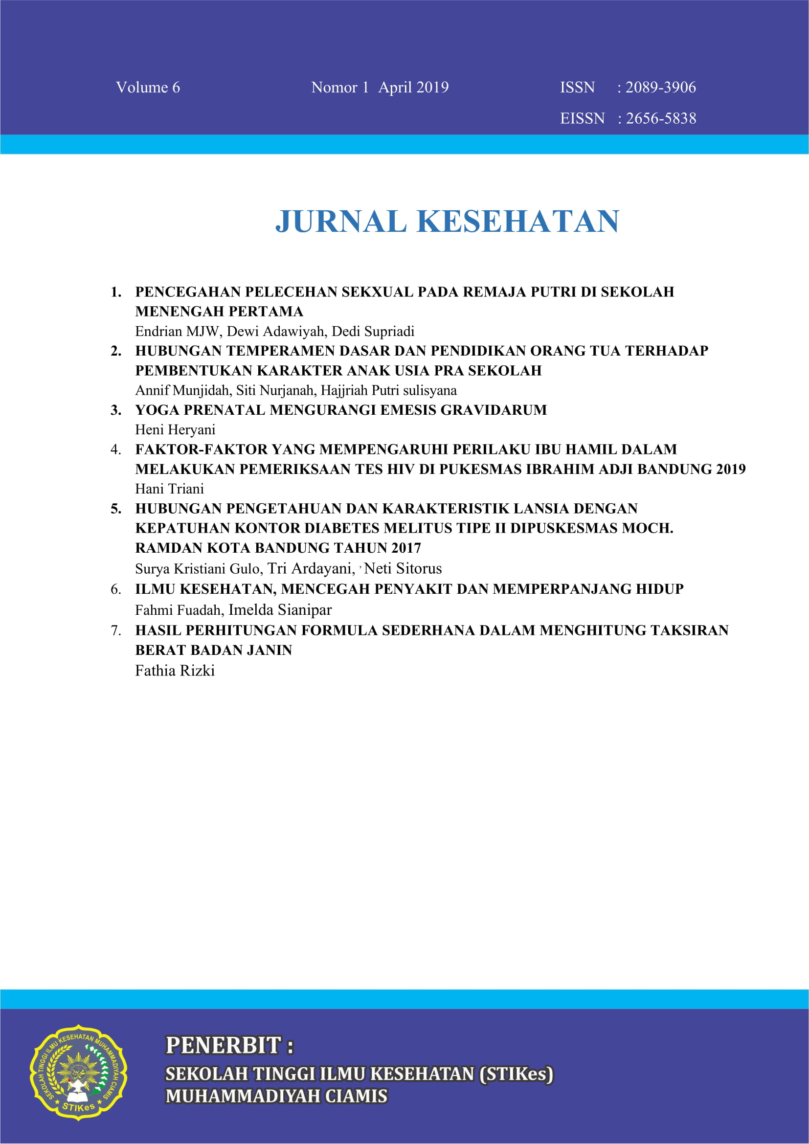 Vol. 10 No. 1 (2023)To readers of the STIKES Muhammadiyah Ciamis medical journal, we are proud to present the latest edition of this health journal. This journal contains quality articles written by authors who are experts in the health sector.